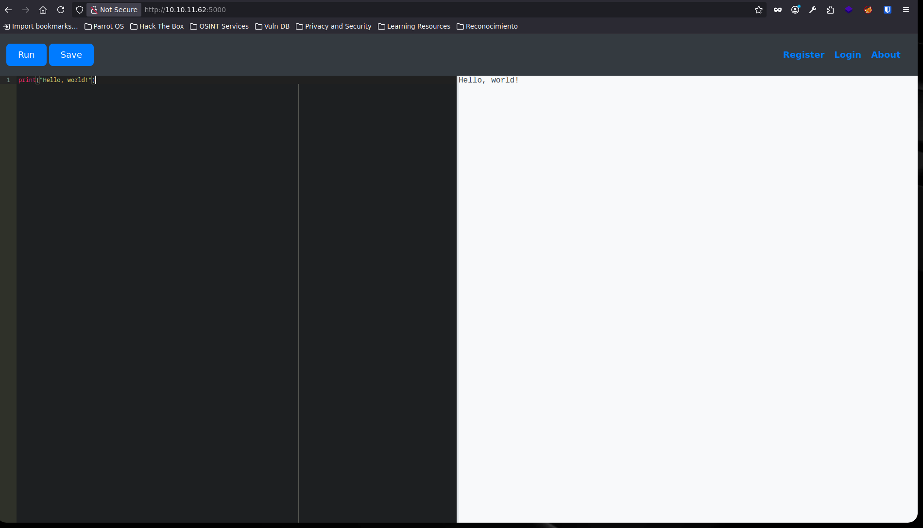 Al ingresar a la página se puede observar una plataforma que ejecuta código en python: