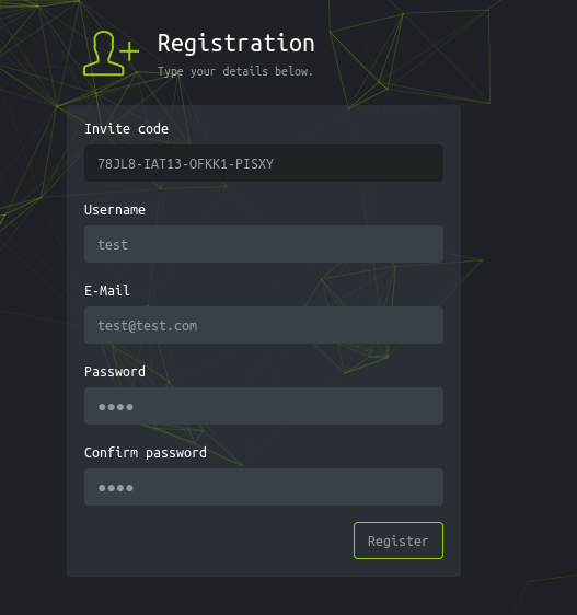 Se prueba el código de invitación y se registra en la página: