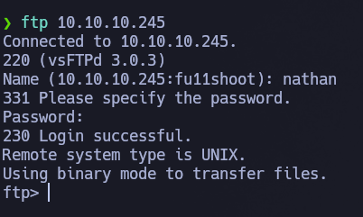 Se intenta ingresar por ftp usando las credenciales nathan/Buck3tH4TF0RM3! y se ingresa de forma satisfactoria