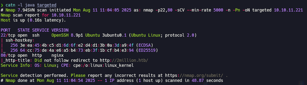 - Luego se hace un escaneo más detallado de los puertos abiertos para encontrar los servicios y versiones que corren en el servidor