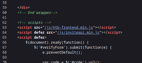 Para obtener el código de invitación es necesario buscar dentro del código fuente de la página, específicamente un script que se llama inviteapi.min.js:
