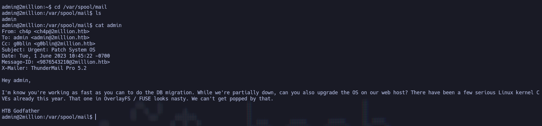 /var/spool/maily se lista el contenido del archivo "admin":