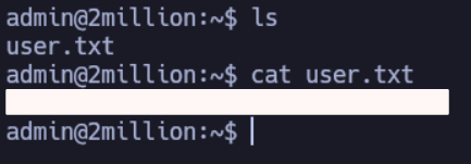 Dentro del usuario admin se encuentra la primera flag (usuario no privilegiado):